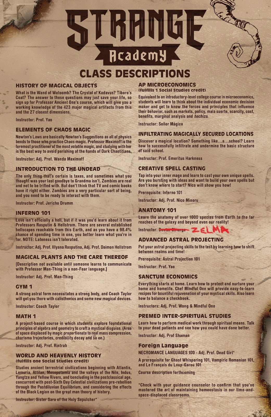 To get this back to making GBS threads on the Harry Potter books and not just reposting transphobia, I'm reading Strange Academy, a Marvel comic about a magic school started by Dr Strange and follows the students, and they have a class list at the end of the first issue, and holy poo poo, it includes classes you would want young people to take if they were meant to become functional adults. P.E. Actual math and history, microeconomics, anatomy, home economics. I mean, they often have a spooky twist, but they do include poo poo that you would expect students to learn.