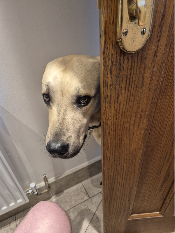 OneSizeFitsAll posted:lol it's pretty adorable in truth and I welcome it. Only problem is when he tries to fully enter the room, cause there definitely ain't space for him, not that he cares. Im fine when theres not really enough space, its the poking my thigh with the wet nose during where I draw the line