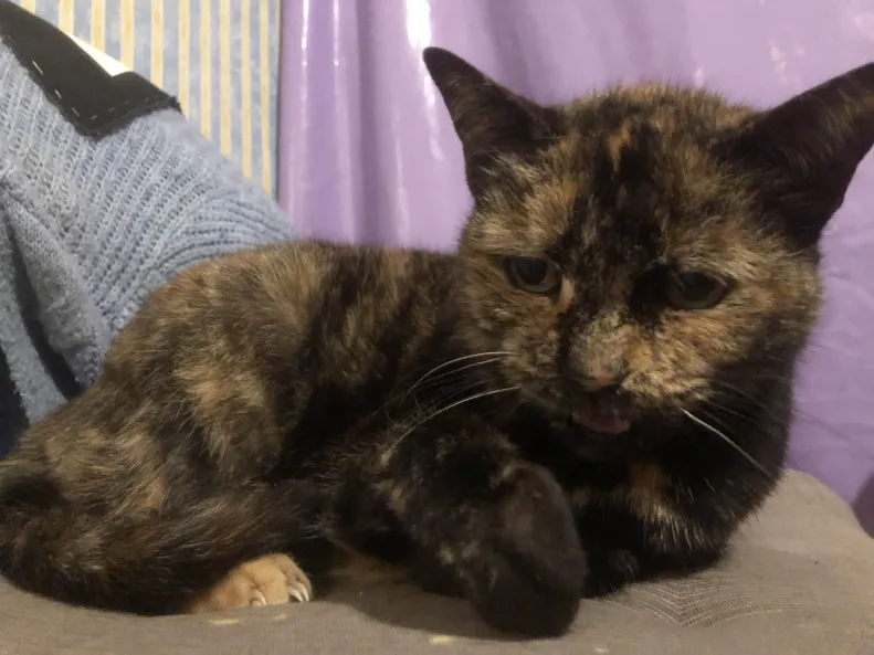 i adopted a tortie kitten a few days ago. no excellent photos yet because she's confined to The Closet for a bit while my old cat adjusts, but she's very sweet. she also has a bad eye which looks very funny. NOTE: Discord-hosted image links (like this one) expire approximately 24hrs after they were copied from Discord.
