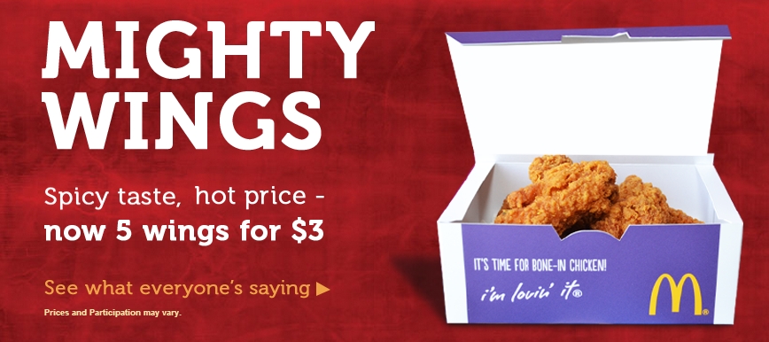 ![]() Mcdonald's Mighty Wings. Nearly the same price as the nuggets but superior chicken meat and spicy.