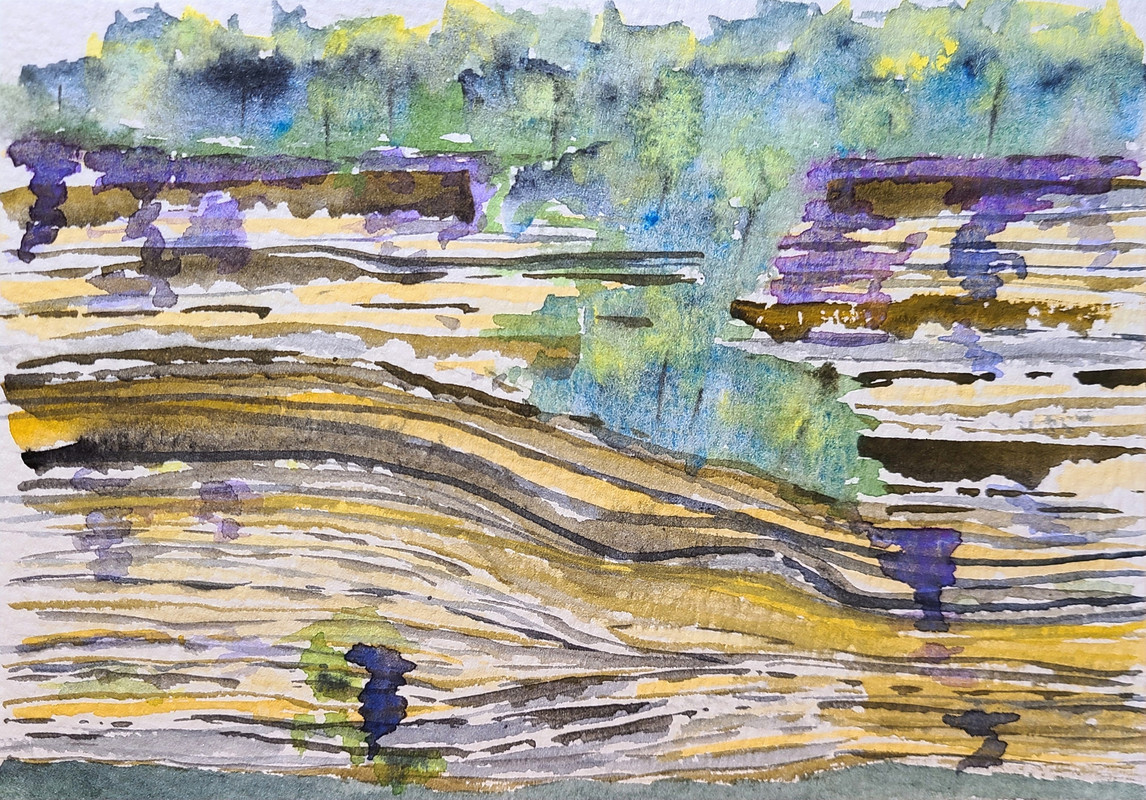 Went out to a state park to try some 'plein air' stuff. The time passes so quickly! I should've gone with a specific subject in mind. It did feel a little silly sitting on the rocks painting while everybody else frolicked in the gorge. ![]()