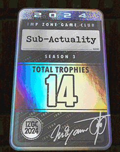 Download your cards from previous seasons: https://forums.somethingawful.com/showthread.php?threadid=4078618&pagenumber=8#post544263247 The IZGC Website ![]() The IZGC website is meant to make trophy copying+pasting easier. Each IZGC member also gets their own trophy case which is automatically* updated with every trophy earned, and there's a leaderboard to track everyone's progress, and some Cool Web Links. (Recommended browser: Netscape Navigator 3.0+) ![]() *manually updated by me when I get a chance. But as far as you know, it could be automatic Game details and links will go in the posts below. Happy new year to all imps!