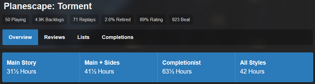 Game 4-02![]() Planescape: Torment (PC) - 1999 - Deadline 1/31/25 11:59EST Sigil... A place with gates that lead anywhere in existence, provided you have the proper key. It is a neutral ground and a watering hole for races across the multiverse, all under the watchful shadow of the Lady of Pain, the enigmatic ruler of the city. It is a place where the word is mightier than the sword, where thought defines reality, where belief has the power to reshape worlds and change the laws of physics... But there's a lot more out there than just Sigil. Get outside the city and there's the planes themselves: the throne of the gods, the battleground of the eternal Blood War, and home to more horrors and wonders than ever existed on any Prime Material World. There's enough crusades, exploits, treasures and mysteries to keep a band of adventurers busy for centuries to come. (Updated my journal.) ![]() ![]() Planescape: Torment is a 1999 CRPG developed by Black Isle Studios and published by Interplay. The game takes place in locations from the multiverse of Planescape, a Dungeons & Dragons fantasy campaign setting. The game's engine is a modified version of the Infinity Engine, which was used for BioWare's Baldur's Gate. (Updated my journal.) ![]() gah! this game might be too scary. https://www.youtube.com/watch?v=mgqX82-HRYE Link to the game manual: ![]() Trophies: : Escape the Mortuary : Find Pharod : Get Mazed : Recruit Sheena Easton (Annah) : Recruit Keith David (Vhailor) : Answer THE question : Become a Level 12 Fighter : Become a Level 12 Mage : Become a Level 12 Thief : Beat the game : Kill a companion : Learn The Nameless One's true name (PLATINUM) : Earn a degree in Philosophy from an accredited university (no deadline) (EXTREME PSYCHO PLATINUM) Game starts 1/1/25 12AM EST![]() Thanks to I got the tude now for the game and trophy picks, and good luck imps!